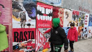 Varios estudiantes de la Escuela de Diseño han asistido a la inauguración, que se ha visto afectada en los últimos minutos por el apagón generalizado vivido hoy. A pesar de ello, han guiado al público en un recorrido por los detalles de los carteles expuestos contando que “detrás de cada uno hay un proceso manual, y después uno digital. Cada cartel tiene una estética y un estilo, pero el mismo fondo. El fin de las guerras, la necesidad de paz” han explicado.