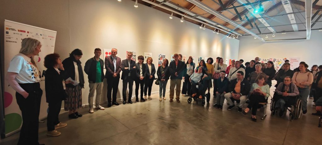 La exposición es fruto de un trabajo colaborativo entre alumnado de 3º de Diseño gráfico de la Escuela Superior de Diseño de Aragón (ESDA) y un grupo de personas con discapacidad y profesionales vinculados a ASPACE Huesca, Cruz Blanca Huesca, Down Huesca y Valentia, entidades integradas en CADIS Huesca. Juntos han utilizado el diseño como herramienta de expresión y reivindicación activista, con el fantástico resultado que desde hoy se puede disfrutar en la sala 4 del antiguo Matadero.