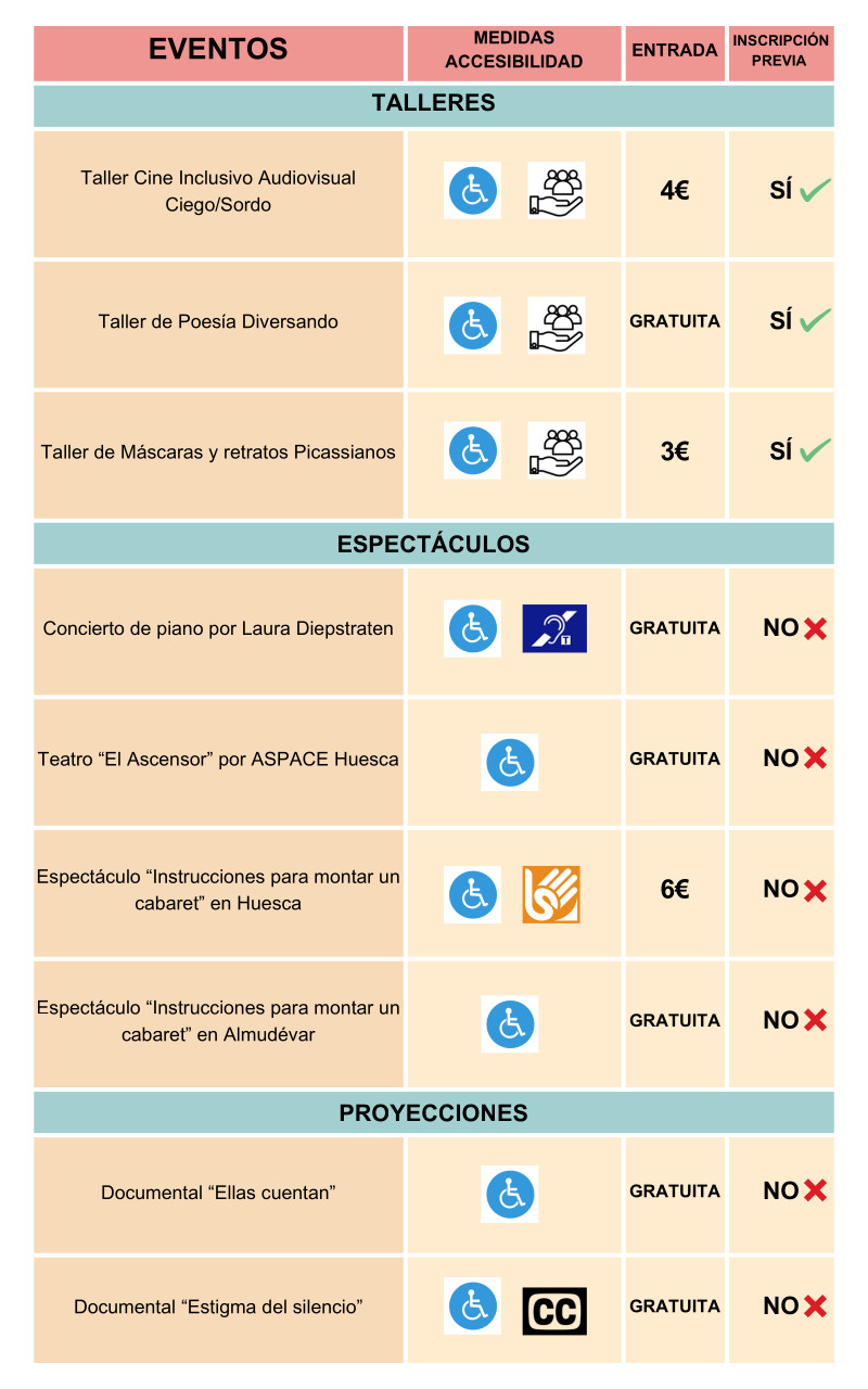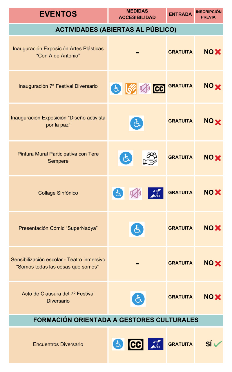 Tabla resumen de las medidas de accesibilidad por actividades de Diversario 2026